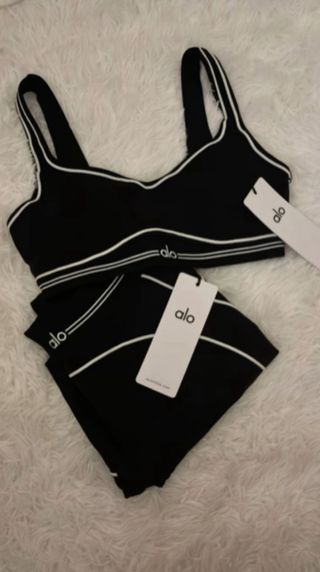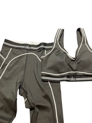 Completo sportivo Alo Yoga composto da top e leggings. - Top sportivo con spalline sottili e bordi a contrasto. - Leggings a vita alta con dettagli a contrasto. - Logo Alo Yoga discreto sui capi.