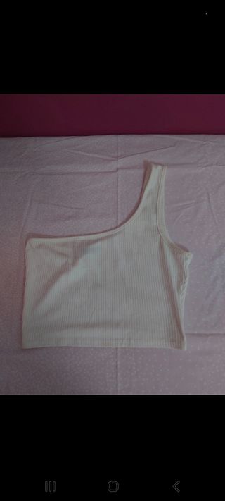 Bellissimo top bianco, aderente e corto, con una spalla scoperta. Perfetto per la primavera o l'estate. - Modello asimmetrico - Tessuto a costine