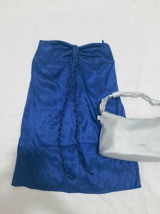 •Top blu elettrico a tinta unita. •Top a fascia. •Top in tessuto lucido. •Elasticizzato sul retro. •Con due laccetti intrecciati da annodare dietro il collo. 50% viscosa 50% poliestere Taglia S Bershka ⚠️Potete fare anche offerte⚠️