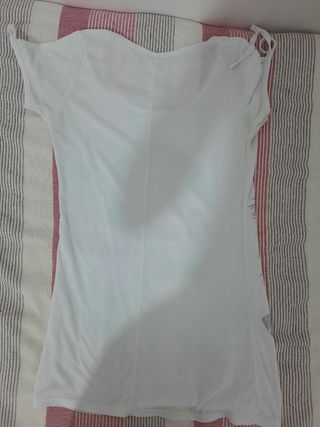 •Top crop bianco. •Scollo rotondo. •Maniche corte. •Il bordo inferiore del top, del collo e delle maniche sono decorati con una fantasia bianca e nera. •Difetto: presenta una piccola macchia arancione avanti sulla spalla sinistrae una dietro alla spalla sinistra. 95% poliestere 5% elastane Taglia S New collection ⚠️Potete fare anche offerte⚠️