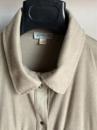 Camicia da donna in similrenna, dal taglio classico e versatile. Tg grandi, 41. - Due tasche sul petto con patta. - Chiusura frontale con bottoni automatici. - Maniche lunghe con polsino. - Collo a camicia.