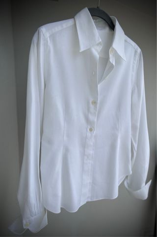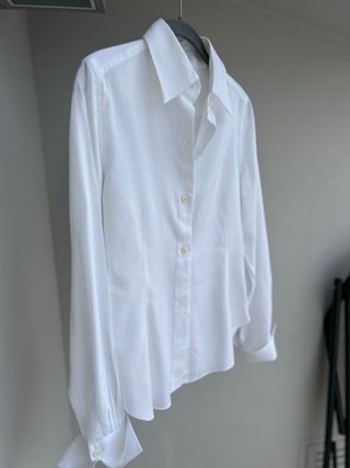 Camicia da donna in cotone, un capo classico e versatile. - Tessuto in cotone di alta qualità. - Design elegante con colletto e bottoni. - Maniche lunghe con polsini.