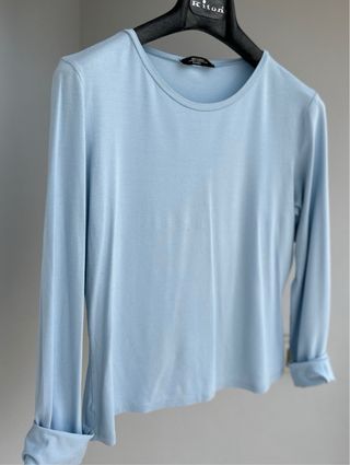 Maglietta a maniche lunghe in un delicato colore azzurro. - Girocollo classico. -Tessuto leggermente elasticizzato