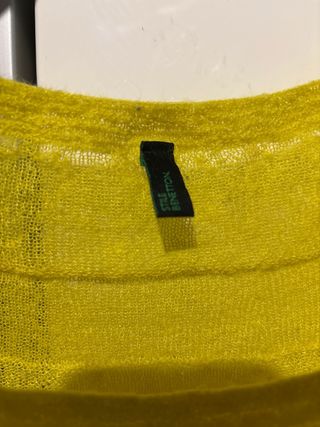 Maglia a maniche lunghe da donna Benetton. - Colore giallo vivace. - Tessuto leggero e lavorato a coste orizzontali.