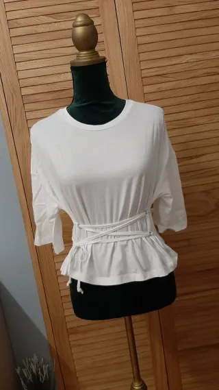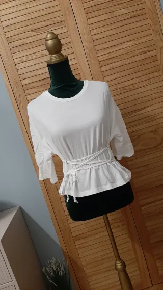 T-shirt bianca Tezenis con laccetto in vita da annodare a piacere Taglia S (anche se manca il cartellino perchè l'avevo tagliato) In cotone elasticizzato Indossata una sola volta e pari al nuovo 8.