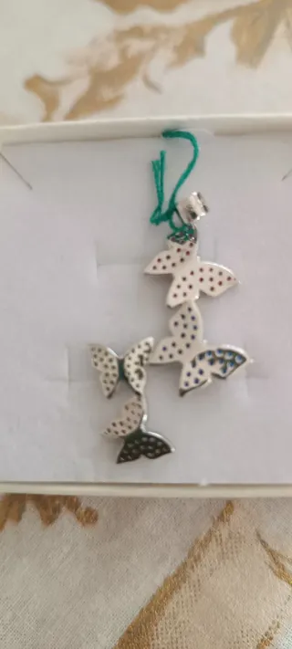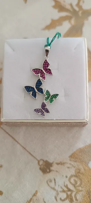 Bellissimo ciondolo a forma di farfalle, realizzato in argento 925 anallergico. - Design a cascata con quattro farfalle. - Dettagli colorati con pietre. - Perfetto per aggiungere un tocco di eleganza.