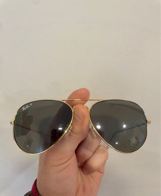 Occhiali da sole Ray-Ban con montatura color oro e lenti grigie. - Design a goccia iconico. - Lenti polarizzate per una visione ottimale.