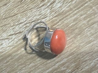 Anello con spola in corallo naturale e montatura in argento 925. - Pietra di corallo di grandi dimensioni. - Montatura in argento 925 Lavorazione artigianale di Torre del Greco