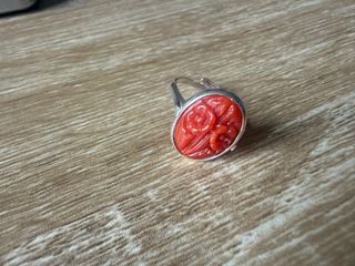 Elegante anello con un bellissimo fiore intagliato in corallo rosso naturale. La montatura è realizzata in argento 925. - Dettaglio floreale intagliato a mano. - Corallo rosso autentico. - Montatura in argento 925. Lavorazione artigianale dí Torre del Greco