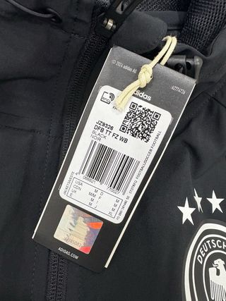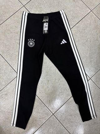 Completo tuta Adidas originale, composto da felpa con cappuccio e pantaloni. - Felpa con zip intera e cappuccio. - Pantaloni con tasche laterali. - Logo Adidas e stemma della nazionale tedesca.