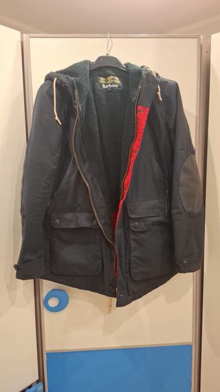 Parka estilo clásico de la marca Barbour. - Capucha con forro interior. - Cierre de cremallera y botones. - Bolsillos frontales con solapa. - Detalles de parches en los codos.