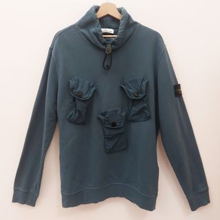 Felpa Stone Island "multi pocket detail mock neck", con tre tasche cargo sul fronte e collo "mock neck" regolabile. Classica compass patch sulla manica. Colore blu petrolio. Capo vintage autentico, raro e in condizioni eccellenti. Taglia L Larghezza spalle: 48 Larghezza petto: 60 Lunghezza maniche: 68 Lunghezza totale: 73 Materiale "cotton fleece" in pile di 100% cotone.