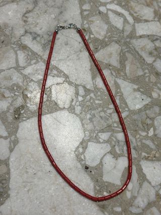 Collana realizzata con corallo rosso a forma di cannettine. La chiusura è in argento. - Corallo naturale a forma di cilindro. - Chiusura a moschettone in argento 925 Lavorazione artigianale di Torre del Greco