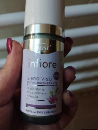 Siero viso Just Infioré Ultra-Rigenerante. - Con Stella alpina, Rosa alpina e Acmella. - Made in Switzerland. - Nuova formula.