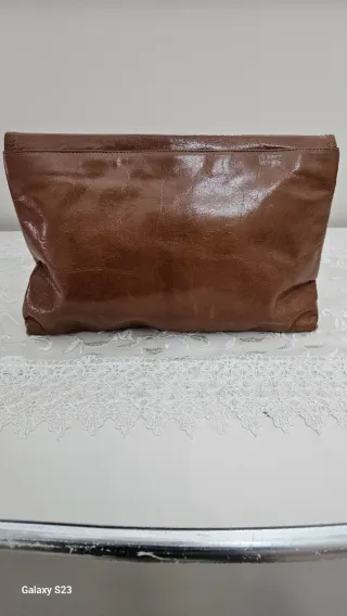 Pochette Bottega Veneta vintage in pelle marrone. - Design classico e intramontabile. - Materiale in pelle morbida e lucida. - Chiusura a patta con cuciture a vista.