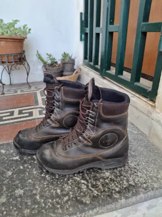 Anfibi in pelle marrone, robusti e resistenti. - Tomaia in pelle. - Chiusura con lacci. - Suola in vibram - Dettagli cuciti.