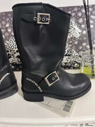 Stivali in pelle nera con dettagli iconici. - Logo Harley-Davidson stampato. - Fibbia regolabile per un fit personalizzato. - Design biker classico.