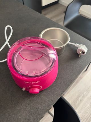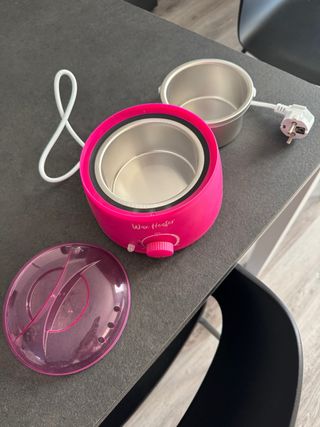 Scaldacera elettrico con finiture in metallo. - Contenitore interno in alluminio. - Coperchio in plastica trasparente. - Manopola di regolazione della temperatura.
