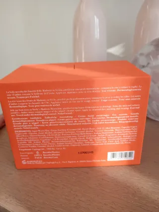 Crema viso antirughe Vagheggi, linea Ambra di Sicilia. - Formato da 50 ml. - Packaging color arancio con dettaglio dorato.