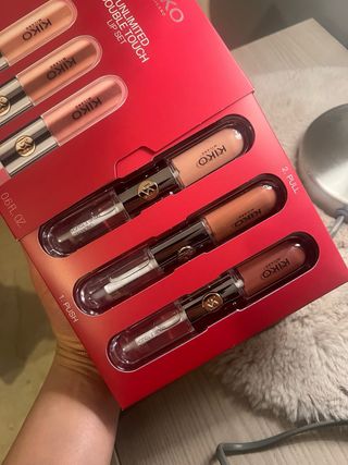 perfetto per il glamour diurno e per i look senza trucco, l'Unlimited Double Touch Lip Set di KIKO Milano in 'Nude Attitude' aggiunge un tocco di colore naturale al broncio. La formula in due fasi è progettata con un colore di base e un lucidalabbra, che lavorano insieme per offrire fino a 12 ore di definizione ad alta brillantezza. Realizzato con una combinazione di polimeri, il rossetto rimane in posizione senza sbavature o trasferimenti, rendendolo il partner perfetto per la vostra routine quotidiana. Il set comprende: Rossetto Unlimited Double Touch '102' 6ml Rossetto Unlimited Double Touch '103' 6ml Rossetto Unlimited Double To