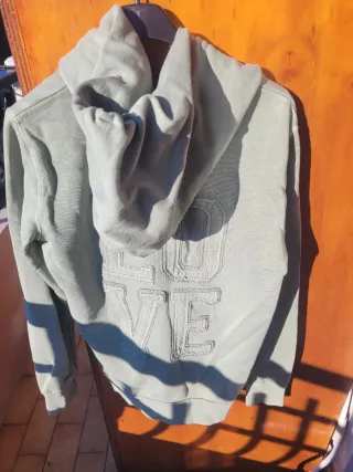 Giacca con cappuccio e tasca frontale. - Logo sul braccio. - Chiusura con zip e bottoni. - Coulisse sul fondo.