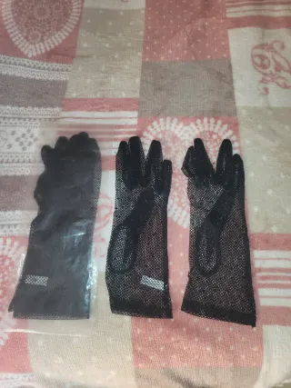 Eleganti guanti neri da donna, perfetti per completare un outfit. N.2 paia ma disponibile a venderli sfusi - Materiale in rete trasparente. - Lunghezza fino al polso. - Dettagli in pizzo sul bordo.