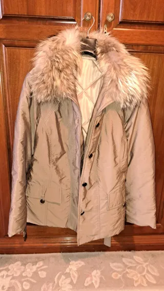 Elegante cappotto trapuntato con un colletto in pelliccia. Un capo caldo e stiloso. - Pelliccia di volpe sul colletto - Marca rdb woman - H. 120 cm spalle 50 cm - Materiale Poliestere