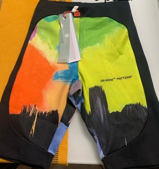 Pantaloncini sportivi Off-White con un vivace design astratto. - Stampa effetto pennellate. - Inserti laterali a costine. - Logo Off-White PATTERN stampato.