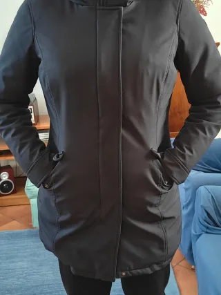 Piumino da donna blu caldo, Urban apparel. Aderete, veste poco. Usato poco e in ottime condizioni. Lunghezza 82 cm, larghezza spalle 54 cm, larghezza fianchi 50 cm, lunghezza manica 60 cm. Cappuccio integrato. Chiusura con zip. Tasche laterali e una tasca interna.