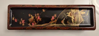 Elegante portagioie in legno con decorazioni dipinte a mano. - Motivo floreale e paesaggistico. - Bordi decorati con motivi dorati.