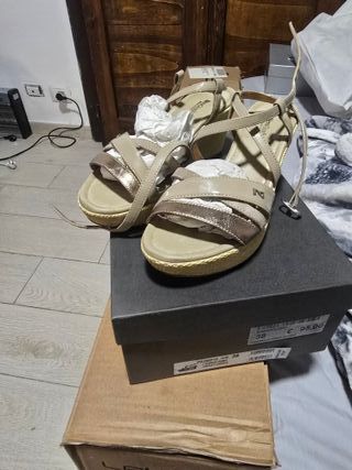 Sandalo con zeppa beige e oro misura 38