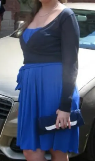 Elegante abito da donna Fairly, perfetto per ogni occasione. - Colore blu elettrico - Tessuto leggero e confortevole. - Cintura in vita per una silhouette definita. Lunghezza sopra il ginocchio Possibilità di avere anche il coprispalle con un aggiunta di 10€. Indossato una volta,pari al nuovo