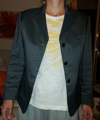 Giacca Aspesi Giacca donna gessato grigia taglia 44 (ma calza poco). Indossata da donna alta 1.60 con taglia 40/42. Sciancrata e più 42. Condizione seminuova, usata pochissimo.