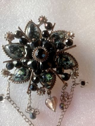 Bellissima spilla vintage a forma di fiore. Circonferenza 9 cm. - Ricca di dettagli - Con cristalli neri e argentati - Elegante e raffinata
