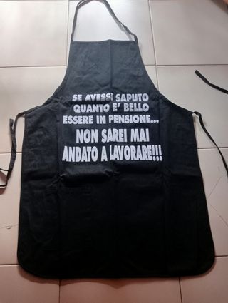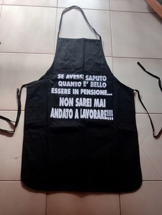 Grembiule da cucina in cotone nero, taglia unica. Perfetto per chi ama cucinare con un tocco di umorismo! Lungo 76 cm. - Stampa divertente con frase in italiano. - Tessuto resistente e di buona qualità. - Pratica tasca frontale.