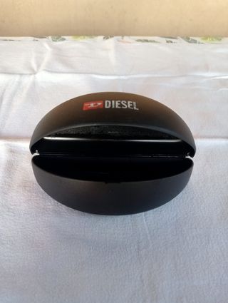 Elegante porta occhiali firmato Diesel. Lungo 17 cm largo 8 cm.alto 6 cm. - Design curvo e moderno. - Logo Diesel in rilievo.