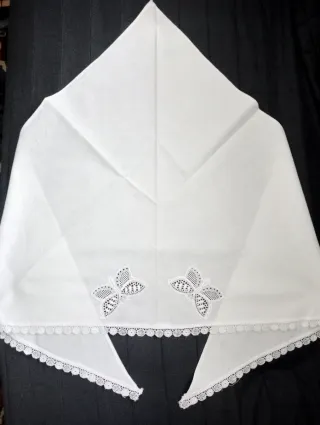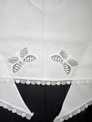 Delicata bandana vintage in cotone, arricchita da un motivo di farfalle ricamate e un bordo in pizzo. Lunga 75 cm, larga 1,07 cm. - Motivo a farfalle. - Dettagli in pizzo. - Tessuto in cotone.