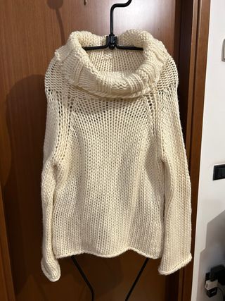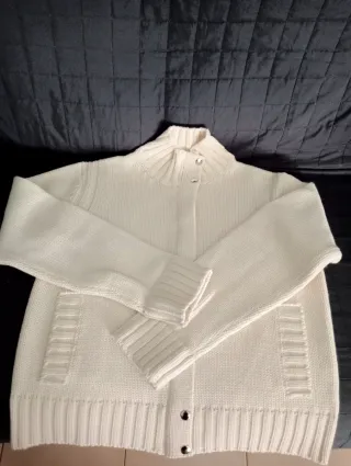Promod maglione lavorato a maglia con collo a scialle. Colore bianco crema. Taglia L. Misure: lunghezza cm 59 da ascella ad ascella cm 48 spalle cm 40 lunghezza manica cm 66. Rimasto per anni nell’armadio. Ben conservato. Indossato due o tre volte. #promod #promodmaglione #maglionecolloascialle #wintervibes #caldoinverno #lana