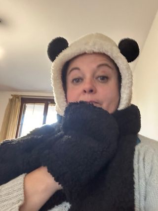 Cappuccio a forma di panda con sciarpa integrata e tasche all’estremità. Pile morbidissimo. Lunghezza delle estremità: cm 64 e cm 114. Mai indossato #panda #cappucciopanda #sciarpascialle #cappellopanda #wintervibes #caldoinverno #halloween #pile #cappellopile #sciarpapile