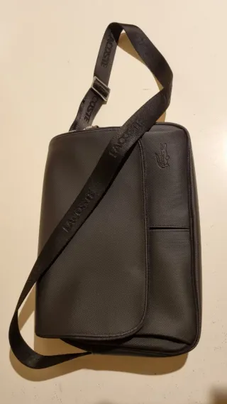 Borsa a tracolla nera Lacoste molto robusta e impermeabile. Mai usata. Dimensioni 30 x 24 x 7 cm. Comoda tracolla in tessuto con marchio. - Logo Lacoste impresso sulla tracolla. - Logo Lacoste a rilievo sul davanti. - Etichetta interna Lacoste