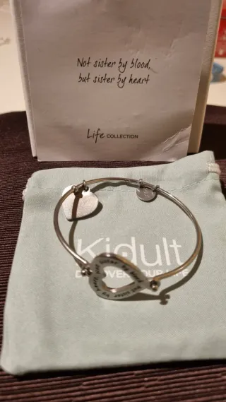 Bellissimo braccialetto rigido Kidult con ciondolo a forma di cuore e chiusura con incisione "Not sister by blood but sister by heart" - Design elegante e significativo. - Ottime condizioni.