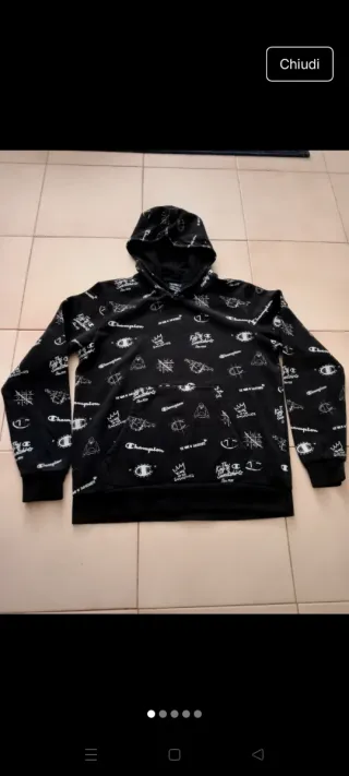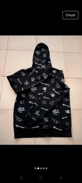 Felpa con cappuccio e stampa all-over. Taglia per ragazza anni 14 - Design con logo Champion ripetuto. - Tasca frontale a marsupio. - Cappuccio con laccetti.