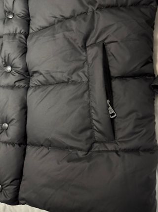 Piumino corto dal taglio femminile e avvitato, ideale per l’inverno e le mezze stagioni. Il tessuto trapuntato dona una linea elegante senza rinunciare alla praticità. Dettagli del capo: • Colore: grigio antracite, versatile e facile da abbinare • Chiusura frontale con zip + pattina con bottoni a pressione • Collo alto e cappuccio con coulisse, perfetti contro vento e freddo • Imbottitura leggera ma molto calda • Taschine laterali con pattina e bottone a pressione • Linea sagomata che valorizza la figura • Condizioni: pari al nuovo Misure (in cm): • Spalle: 42 • Petto: 94 • Vita: 75 • Lunghezza: 59
