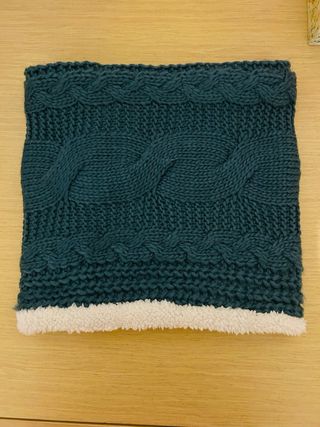 Scalda collo in maglia con motivo a treccia. Colore verde petrolio. Interno in pile. Misure cm 30x30 circa (vedi foto). Composizione: esterno 100% acrilico e interno 100% poliestere. #scaldacollo #scaldacollopile #wintervibes #caldoinverno #ilovewinter #ilovemountains