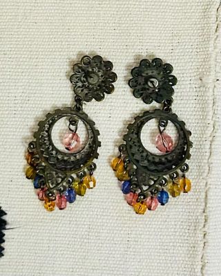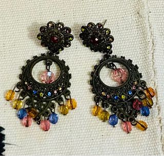 Orecchini pendenti di fine bigiotteria che riprendono lo stile a lampadario di Joan Rivers. Sapore retrò vintage. Imperfezioni: manca la chiusura. Lunghezza cm 4,7 circa #orecchinipendenti #orecchinialampadario #joanrvers #bigiotteriavintage #bigiotteriaretro #bijooux