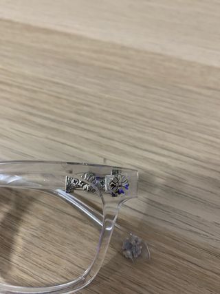 Occhiali da vista con montatura trasparente e dettagli in argento. - Montatura in acetato trasparente. - Dettagli decorativi a forma di croce. - Lenti trasparenti. prezzo non trattabile