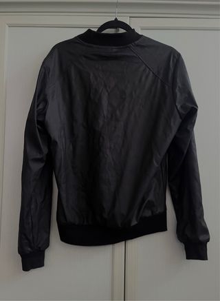 Giacca bomber stile college con scritta Chicago. - Colletto, polsini e fondo a costine con strisce. - Chiusura con bottoni a pressione. - Dettagli rossi e bianchi.