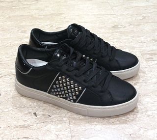 Sneaker in pelle nera con borchiette, nuova mai usata e senza difetti