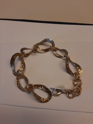 Elegante bracciale a catena con maglie ovali. Doratura Non si Ossida - Finitura martellata. - Chiusura con moschettone robusto lunghezza da 18 a 22 cm con scatola