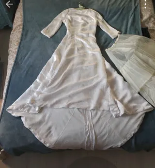 Elegante abito da sposa vintage, un vero pezzo unico degli anni '60. - Tessuto in seta e sottoveste - Maniche a tre quarti. - Silhouette classica e raffinata. taglia 44